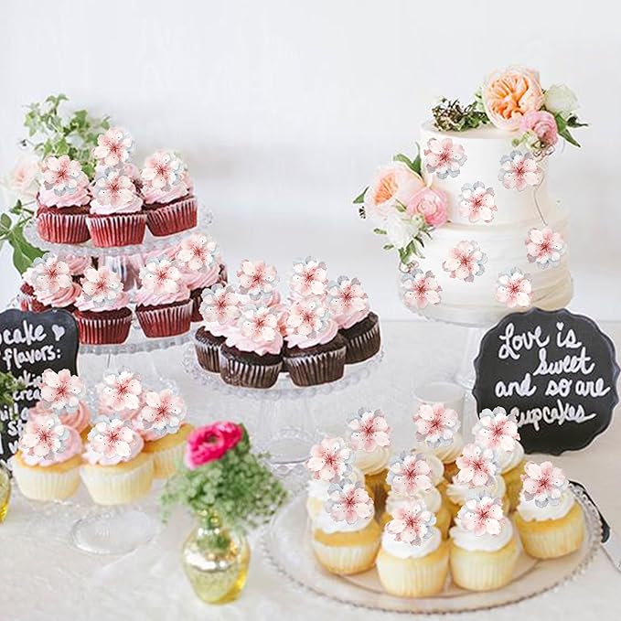 - Wide Usages ! These edible cherry blossoms cupcake toppers are perfect for cherry blossoms theme party, edible wafer paper flower theme party, baby shower theme party,wedding theme party, kids birthday theme party cupcake decorations, they can make your cake and cupcake more attractive and bring the fun to your party.You can also apply them for ice cream,fruits, pie, dessert, cheese or any dish and food appetizer you want to decorate.