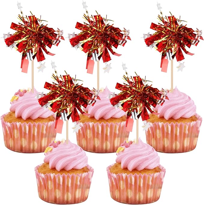 - Buy with Confidence ! Our foil firework cupcake toppers are intended for decoration only, please do not put them in oven or microwave. Please contact us in case of any problems, we will do all we can to make you satisfied.