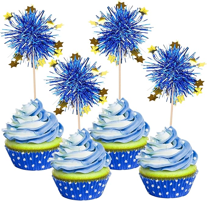 - Buy with Confidence ! Our foil firework cupcake toppers are intended for decoration only, please do not put them in oven or microwave. Please contact us in case of any problems, we will do all we can to make you satisfied.