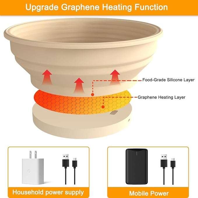 - Upgrade Graphene-Heated Function: Compared to traditional proofing baskets, this graphene-heated bread proofing basket saves much time, which allow experience the joy of baking bread at your convenience. Even in the cold winter, achieve complete fermentation in just 30-60 minutes, say goodbye to long waiting times and hello to freshly baked bread whenever you desire!