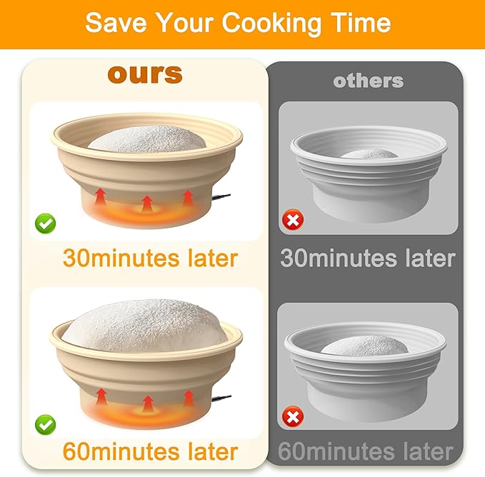 - Multiple Uses: Our Heating Bread Proofing Basket is not only suitable for fermenting dough, but also can be used to make yogurt, ferment wine, chocolate, cheese, meat thawing, heating mask, pet food thermostat, practical kitchen gadget.