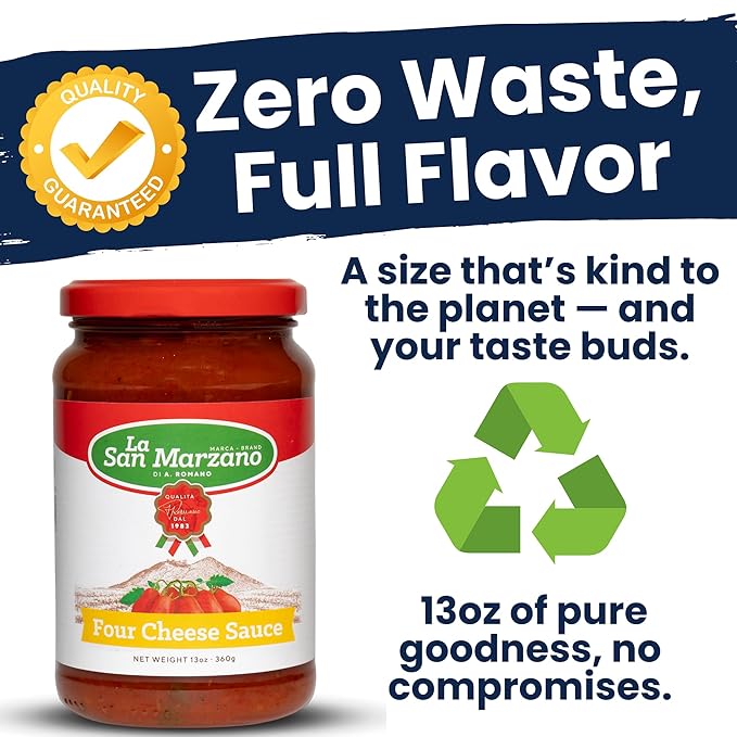 La San Marzano Four Cheese Sauce, 13 oz, Pasta Sauce Made in Italy, All Purpose Tomato Premium Quality, All Natural, Non GMO, Gluten Free