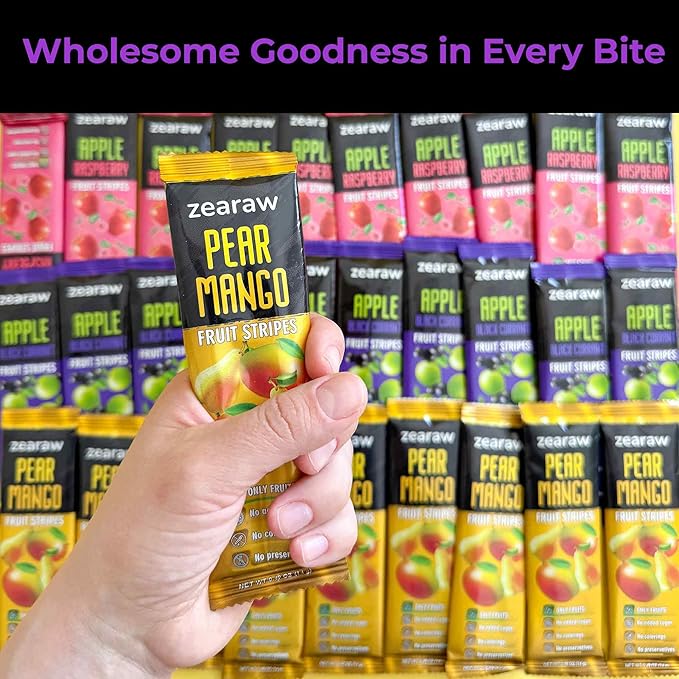 ZEARAW Healthy Fruit Snacks for Adults and Kids ??30 Organic Fruit Leather with Dried Black Currant, Pear-Mango, Apple-Raspberry ??Vegan Low-Carb Variety Pack Strips for Kids ??Sugar Free Bars