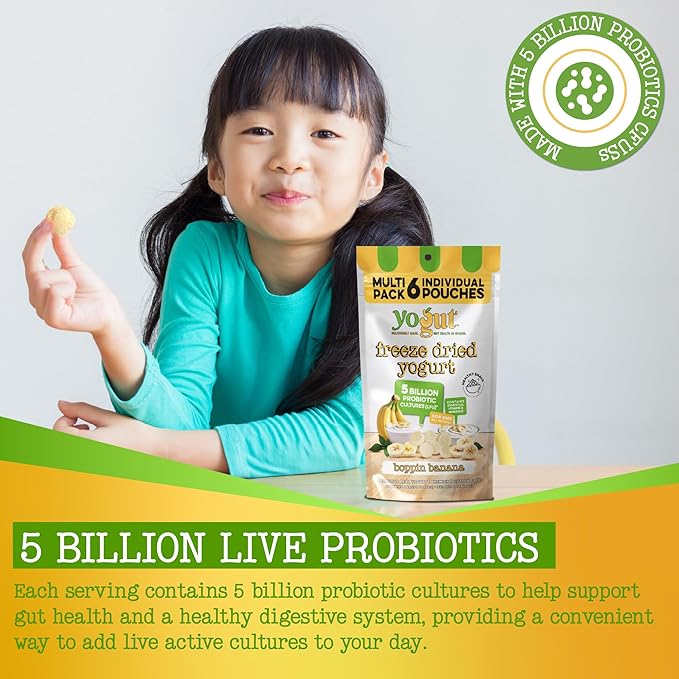 YoGut Freeze Dried Yogurt Snack, Banana, 6 Pk, Healthy Snacks for Kids, Toddlers & Adults, Gluten Free, Non GMO, With 5 Billion Live Probiotics, Vitamins & Minerals, Individual Snack Packs