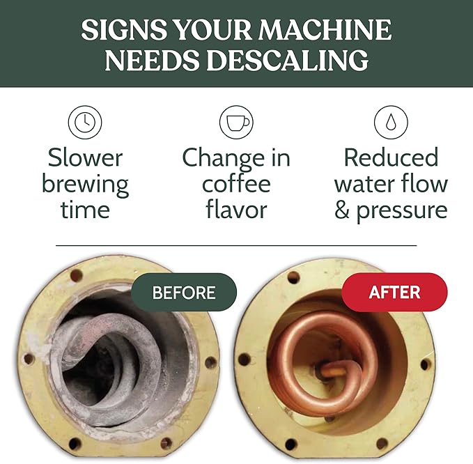 - RESTORES BREW TIME & MACHINE PERFORMANCE - This fast-acting coffee machine descaler powder cleans boilers, water lines, and heating elements, optimizing temperature, pressure, and extraction for barista-quality coffee.