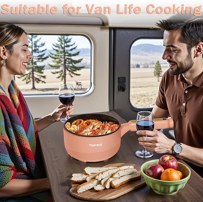 TOPWIT Hot Pot Electric, ?윇?릩 Electric Pot, Non-Stick Portable Cooker, Portable Hot Pot, Saut챕 Pan for Steak, Egg, Fried Rice, Ramen, Soup with Dual Power Control (Silicone Spatula Included), Peach