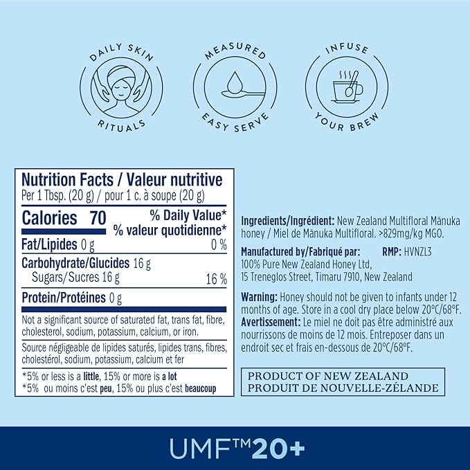 - Daily Potency UMF 20+ Mānuka Honey: A prebiotic superfood to enhance warm drinks, skin rituals, and nutrient-dense meals. Enjoy daily for peak performance inside and out. Feel 100%, live 100%!