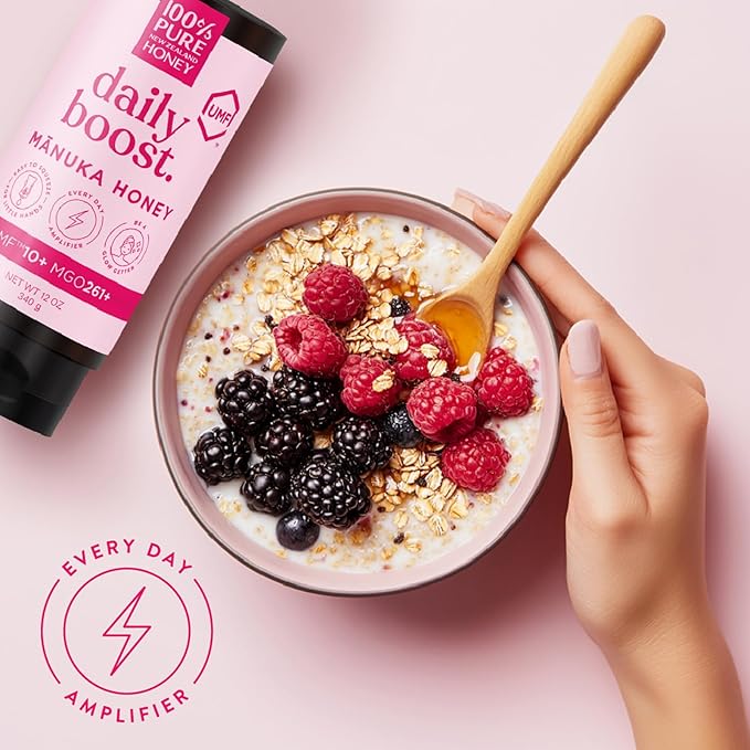 - Daily Boost UMF 10+ Mānuka Honey: A wholefood sweetener for hot/cold drinks, yoghurt, toast, oats, pancakes, and baking. Feel 100%, live 100%!