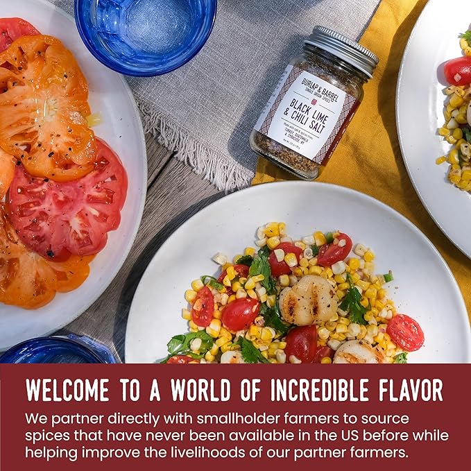 - Burlap & Barrel Black Lime & Chili Salt - As Seen on Shark Tank!- Savory, Tart, Mildly Spicy - Seasoning Salt for Seafood, Salads & Grilling - 3.0 oz Glass Jar