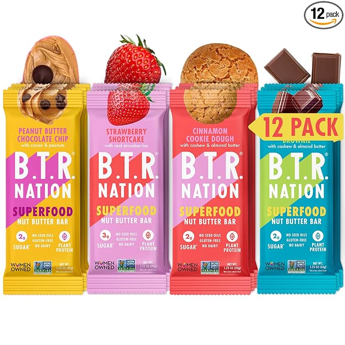 - ✅ SUPERFOODS TO FUEL YOUR AM - PM: B.T.R. Bars are the first Protein Bars with a Purpose. Powered by plant-based superfoods so you can feel really good about every delicious bite. These clean vegan protein bars & keto bars are made with the highest quality plant-based protein, between 140-150 calories, and Registered Dietitian approved snacks.