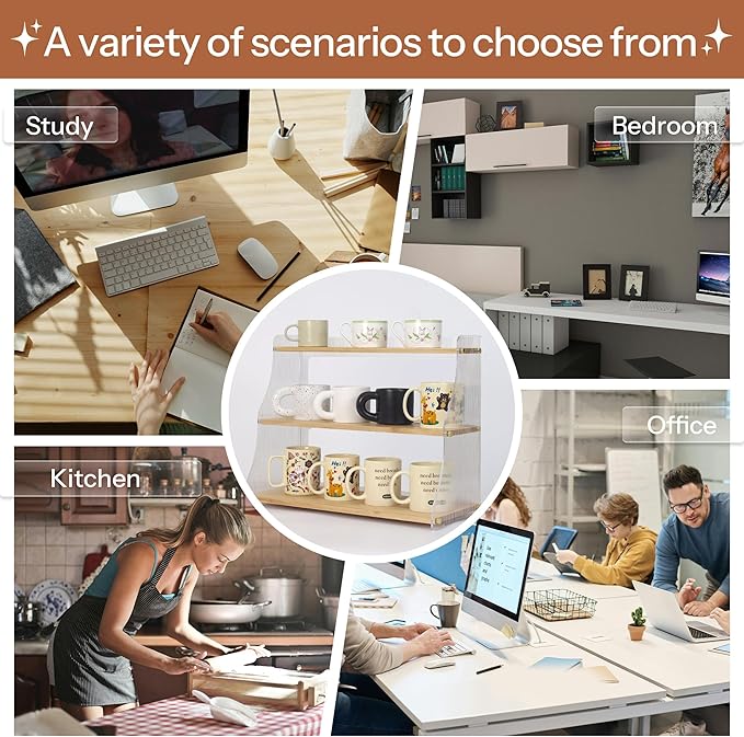 - Sturdy And Durable: The stand is made of premium wood and acrylic panels for durability. The sturdy construction ensures that it can hold the weight of multiple mugs without wobbling or tipping.