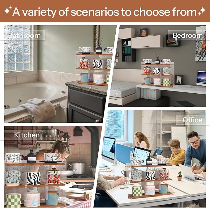 - Stylish Design: Featuring wavy acrylic side panels and a natural wood board. The sturdy construction ensures that it can hold the weight of multiple mugs without wobbling or tipping. this organizer presents an aesthetically pleasing texture, ideal for coffee bar enthusiasts and those who love to decorate their spaces.