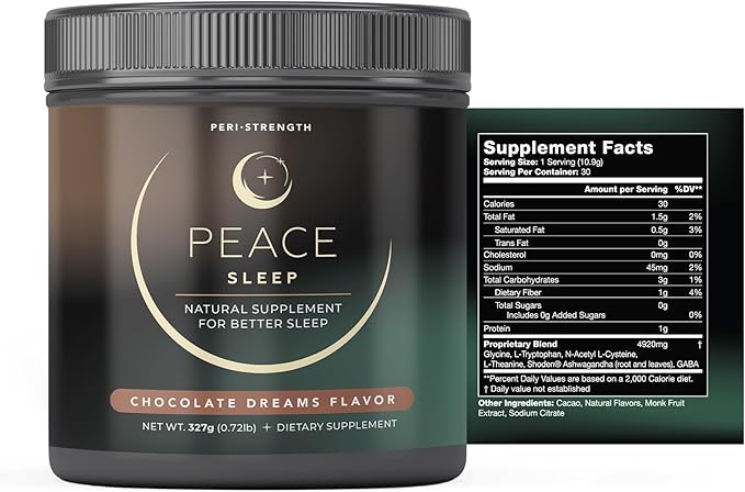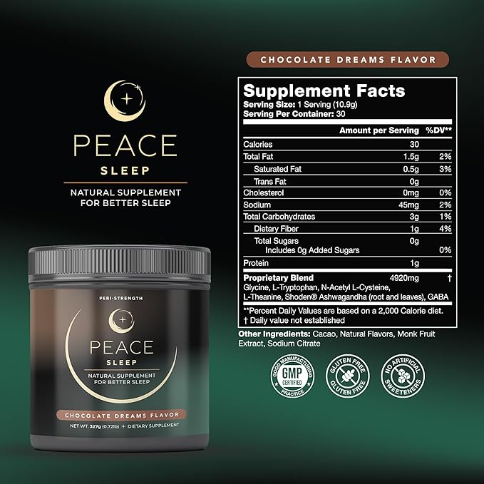 Peace Sleep - Sleep and Recovery Chocolate Powder Drink Mix - Sleep Aid Supplement with GABA, L-Tryptophan, L-Theanine, Glycine - for Tranquil Sleep, Restful Nights, Productive Days - Gluten Free