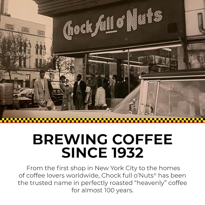 - OUR STORY: Since 1932, Chock full o’Nuts has been a trusted name in coffee, known for delivering expertly roasted, aromatic blends. What began as a small shop on Broadway in New York City has grown into a beloved brand enjoyed by coffee lovers everywhere. Nearly a century later, our passion for high-quality coffee remains the same.