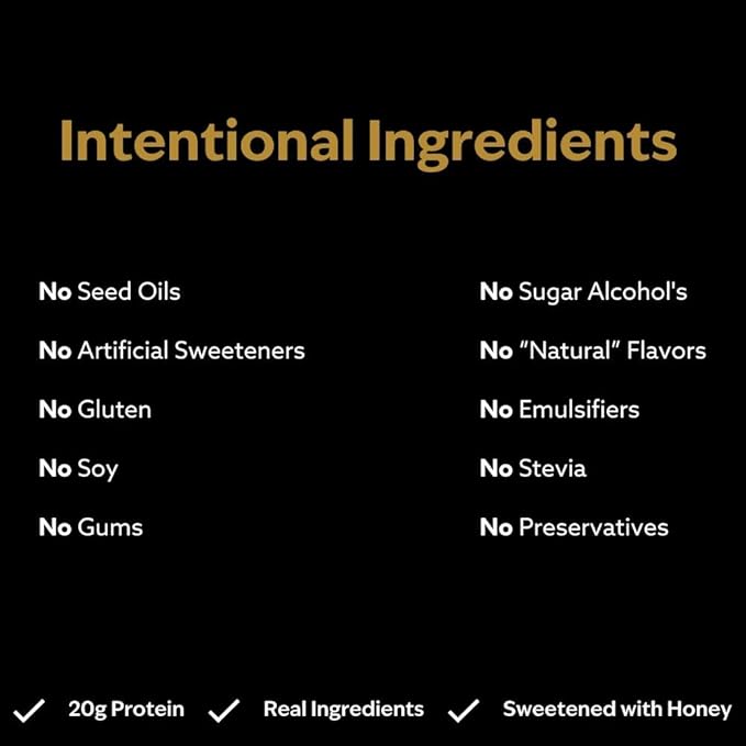 - JACOB PROTEIN BARS: Most protein bars are loaded with garbage you don't want in your body, so we created a truly clean and tasty option. 20g of Grss-Fed Protein, No Seed Oils and Nothing Artificial