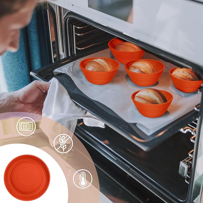 - Elevate Your Baking: Our premium silicone bread proofing baskets outshine traditional rattan ones. The sourdough starter kit is made from top-grade, BPA-free silicone, our bread baskets handle temperatures from -20°F to 440°F (-30°C to 226.15°C), ideal for fridge proofing and direct oven use. Safe, durable, and versatile—transform your baking experience today