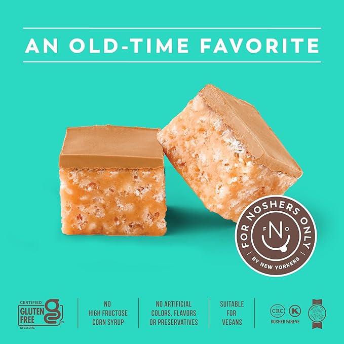 For Noshers Only Peanut Butter Bites - Gluten-Free, Vegan, Kosher Snacks - Coated, Healthy Snack Bites - Whole Grain Brown Rice - No Artificial Ingredients - Individually Wrapped, Low-Calorie - Pack of 8, Caramal
