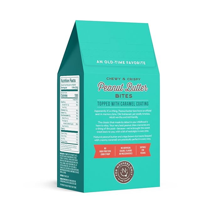 - CHEWY & CRISPY PB BITES - Peanut butter snacks inspired by the classic crispy rice treats you know and love, but with 100% natural ingredients. Sink your teeth into creamy peanut butter, crispy whole grain brown rice, and a sweet chocolate topping—all without the artificial stuff.