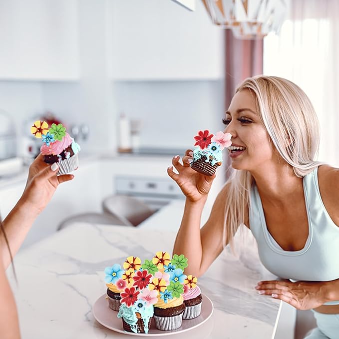 - Unique Design and Proper Size! Brace yourself for a ton of compliments.Your guests will love the unique flowers design on the cake and cupcake, these edible flowers cupcake toppers can be used at different theme party decorations