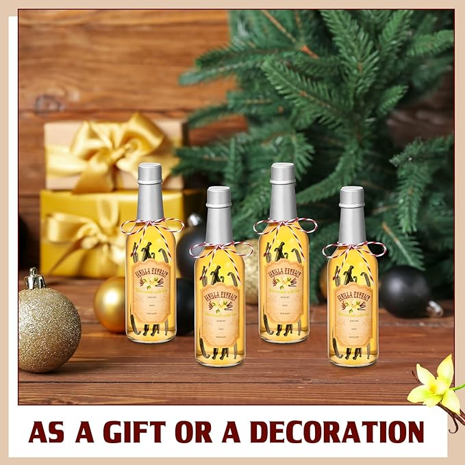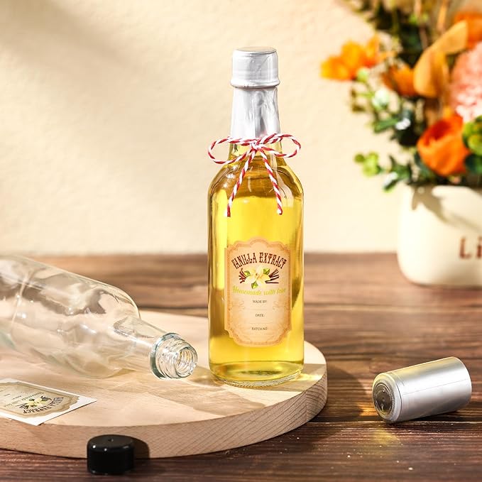 - Comprehensive Bottle Collection: dive into our 16 piece clear bottles for liquor, with an impressive capacity of 8.5 oz each; Boasting PVC shrink capsules, these vanilla extract bottles come with vanilla essence stickers to ensure long term usability