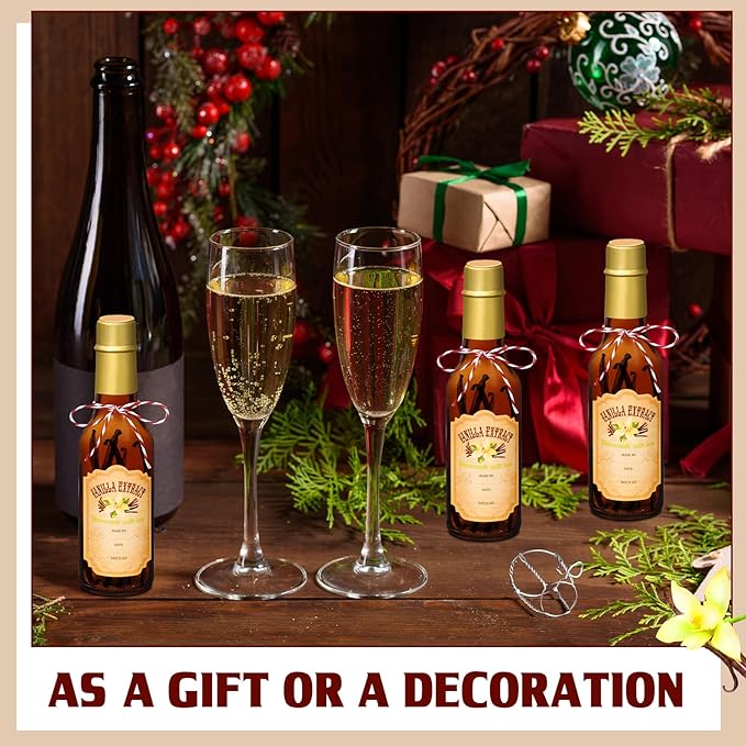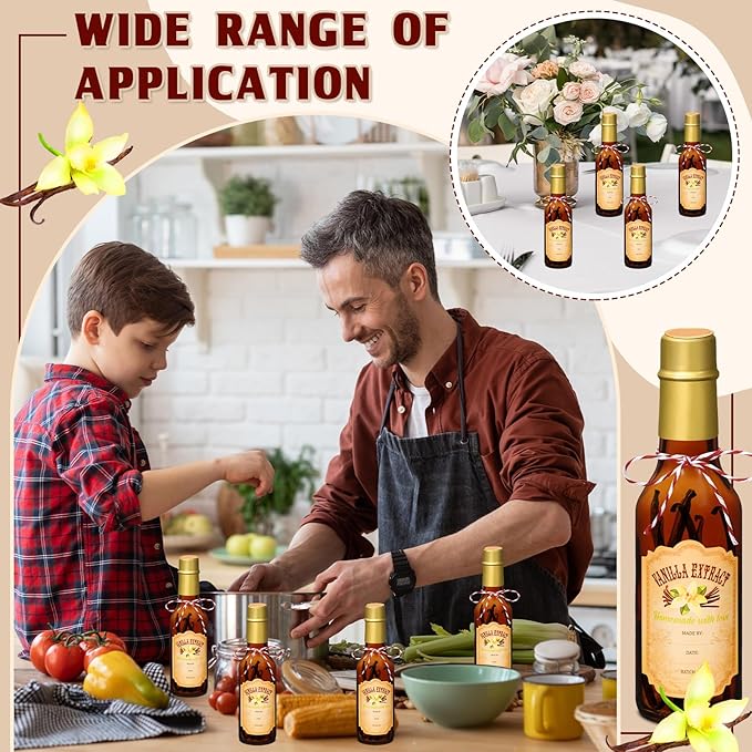 - Ideal for Gifting: with our medium sized pantry labels, showcase your creative talents to your loved ones; Consider writing the creation date and your name on our elegantly designed vanilla essence stickers, and attach them onto our brown glass bottle using a string; Fill them up with your homemade vanilla essence, seal snugly with heat shrink tape, and you have a nice present for family and friends for housewarming, birthdays, Wedding, Thanksgiving, Christmas, and countless other occasions