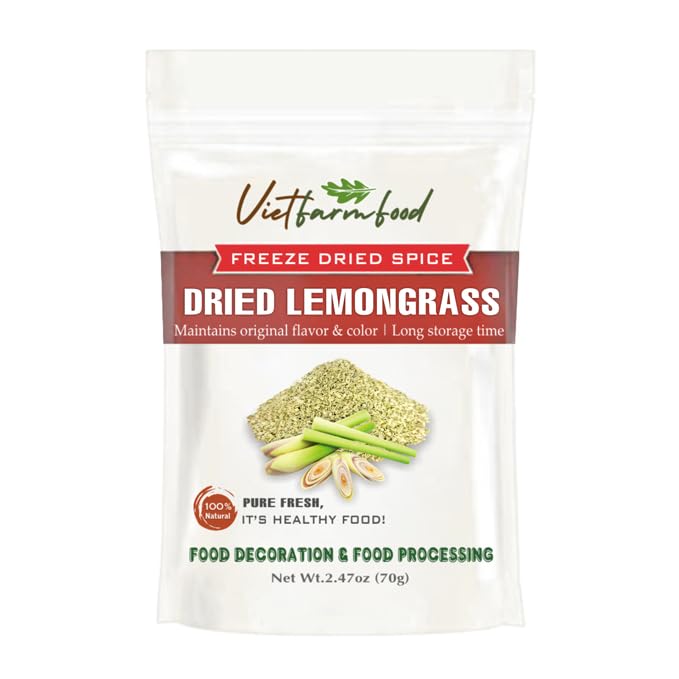 DRIED LEMONGRASS 2.47 Oz (70g) VIETFARMFOOD: Pure, natural freeze-dried spice made from real vegetables and fruits - perfect for enhancing every meal, from cooking, baking, salads, soups, sauces