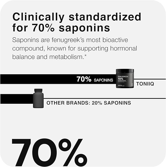 - Highest Saponin Content: Our Fenugreek Capsules provide 875mg of saponins per serving, making it the most potent saponin product in the market.