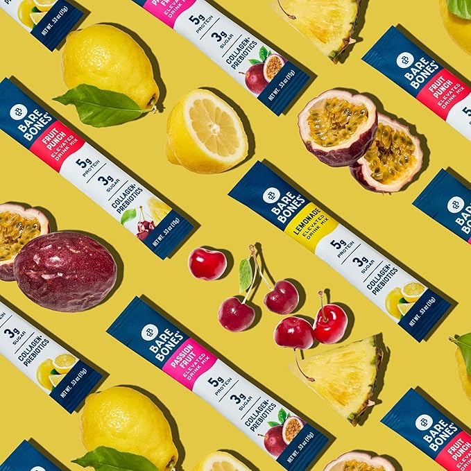 - POWERFUL INGREDIENTS: Elevate your wellness routine with Bare Bones Elevated Drink Mix. Each stick pack is loaded with 5g of collagen protein and essential prebiotics for holistic wellness. It also contains Agave Inulin, Sweet Agave Syrup, Real Fruit Juice and Sea Salt. This convenient EDM is a delicious and nutritious way to boost your hydration and overall well-being.