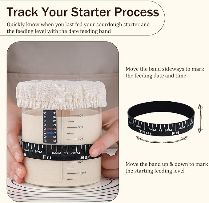 - Easy to Track and Maintain: The dated feeding band can help you know when you last fed and the feeding level, and the clear sourdough jar allows you to watch changes in your starter so you can easily track the growth of your starter