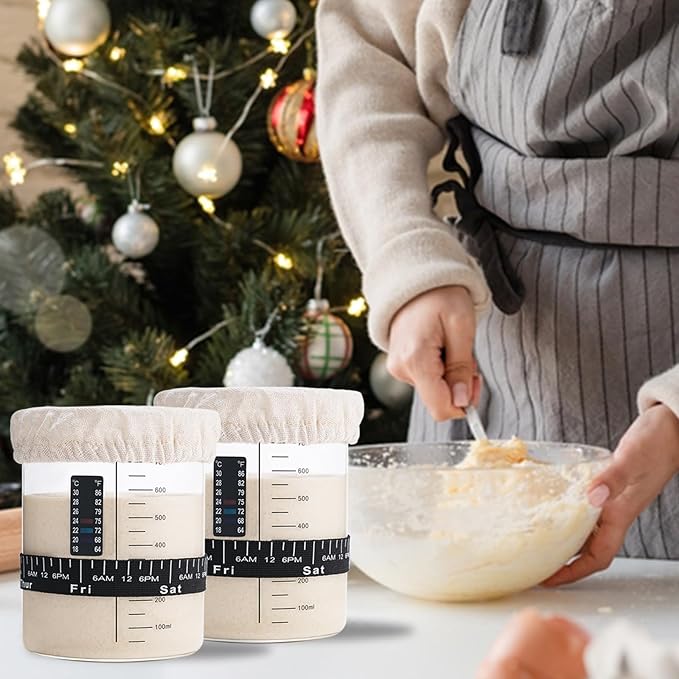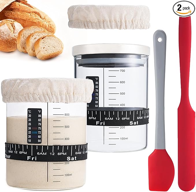 - Easy to Use: Whether you're a beginner or a pro, this sourdough starter kit will make the starter process easier. This kit includes two jars, two breathable cloth covers, two spatulas, two feeding marker bands, two temperature stickers, and a RECIPE (excludes starter culture)