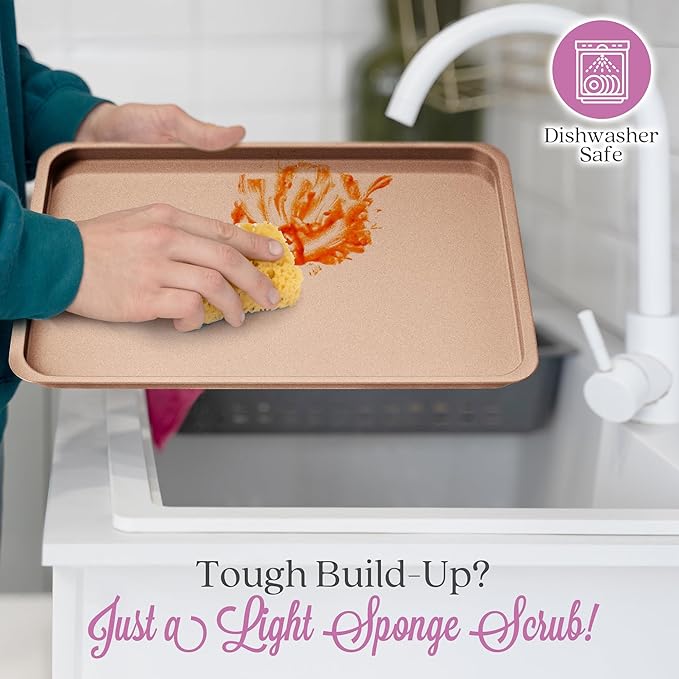 - ๐๐ฒ๐ฎ๐๐ ๐๐๐๐ ๐๐ฎ๐ธ๐ถ๐ป๐ด ๐ฆ๐ต๐ฒ๐ฒ๐ ๐ฃ๐ฎ๐ป๐ - Our large cookie sheet jelly roll baking set combines family fun with practicality. Crafted from heavy-gauge steel, these heavy duty cookie sheets for baking non toxic are built to last, resisting warping or bending even at high temperatures up to 450ยฐF. Designed for professional-grade quality, the cookie baking sheets non stick ensure even baking for perfect results every time. Plus, theyโre easy to cleanโdishwasher safe or with a quick wash and scrub - making cleanup effortless!