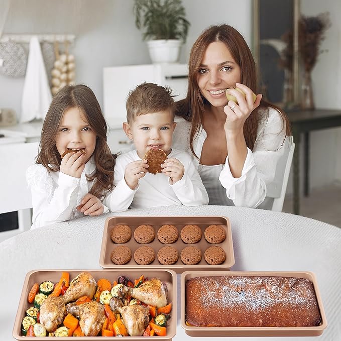 - ๐๐ผ๐ผ๐ธ๐ถ๐ฒ ๐ฆ๐ต๐ฒ๐ฒ๐ ๐ฆ๐ฒ๐ ๐ข๐ณ ๐ฏ ๐ช๐ถ๐๐ต ๐ฃ๐ฟ๐ฎ๐ฐ๐๐ถ๐ฐ๐ฎ๐น ๐๐ฒ๐๐ถ๐ด๐ป: This baking sheet pan set features a convenient 1-inch rim on each gold baking sheet that is a nonstick cookie sheets for a secure and easy grip, making it safe to handle in and out of the oven. The non stick cooking sheets for oven are perfectly deep for roasting meats, fish, or baking with sauces and gravies, keeping everything mess free & easy to manage