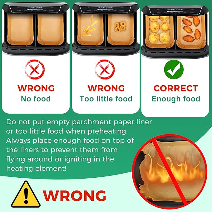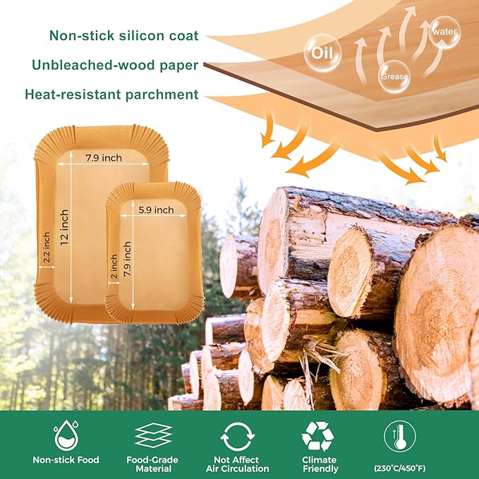 - Keep Your Air Fryer Clean: These rectangle parchment paper with no holes and higher edge designed do a great job of absorbing grease splatters, effectively keep food residue away from sides and bottom of the air fryer and make it as clean as unused. Just pull the food out of your air fryer basket with no cleanup mess.