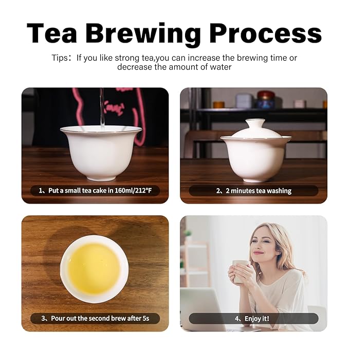 - 【Unique Aroma and Taste】 When you open the package, you will smell the light aroma of raw Puerh tea cakes like the scent of deep forests or high mountain clouds, which is comforting. After brewing, the color of the tea broth is clear and bright, the taste is refreshing, and the flavor is strong without any fishy smell, leaving a long aftertaste.