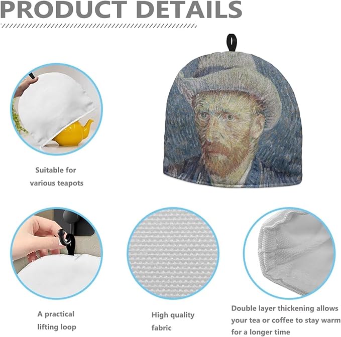 Tea Cozy for Teapot with Handle Van Oil Painting Dust Cover Extra Thick Teapot Covers for Keeping Warm Kitchen Decorative for Keeping Warm Can Hung and Folded 竊뉰lue竊?"<div>