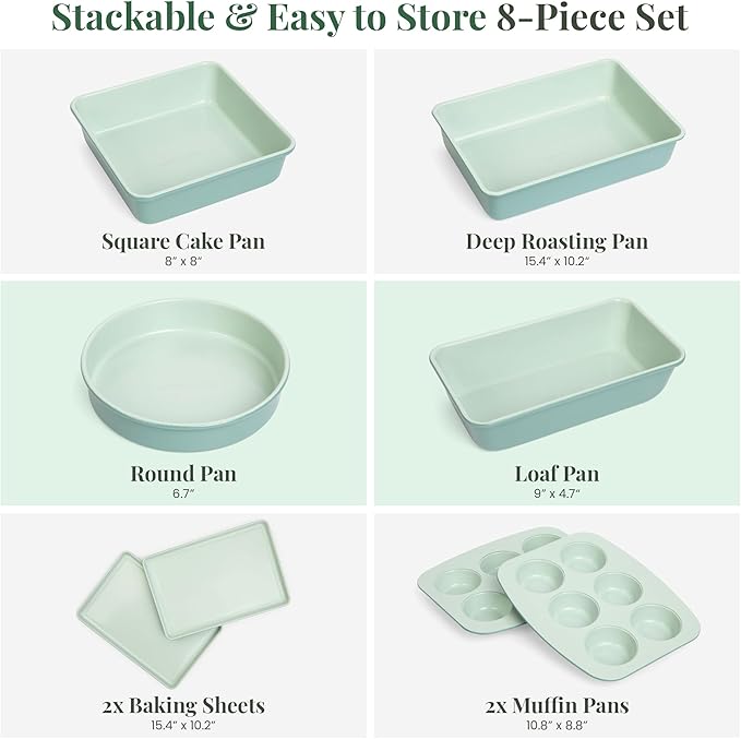 - Non-stick, Oven-Safe and Durable: Our baking pans set is made of heavy-duty aluminized steel with a ceramic finish and is PTFE, PFAS and PFOA free. These baking essentials are oven safe up to 475°F. Guaranteeing food safety and durability, these baking pans are kitchen must haves.
