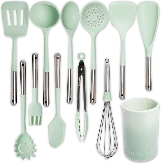 - 12 Piece Silicone Kitchen Utensil Set with Ceramic Holder