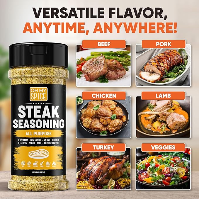 - ✅ GLUTEN FREE, LOW SODIUM & DIET-FRIENDLY: Crafted with no MSG, no preservatives, and no artificial additives, this gluten free all-purpose seasoning is perfect for low sodium, keto, and paleo diets. With zero sugar added and 0 calories, enjoy a guilt-free steak seasoning that enhances your meals with pure, robust flavor while keeping your diet on track!