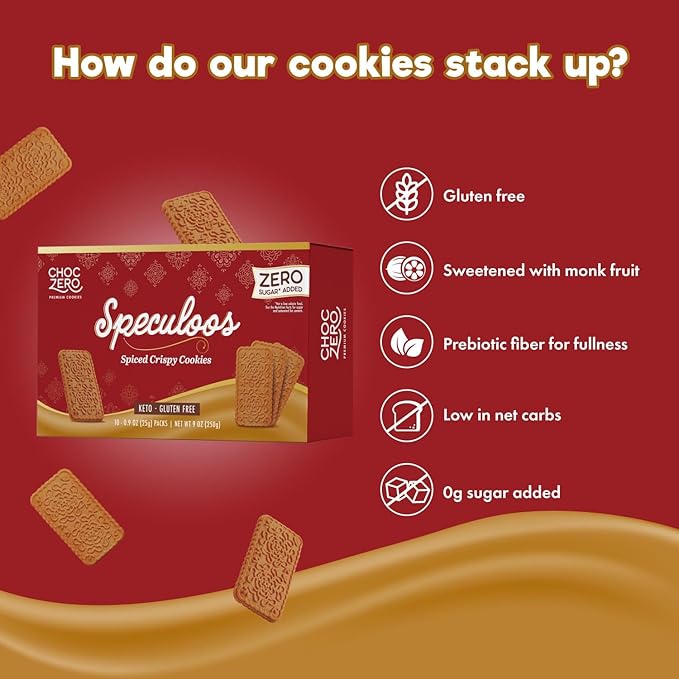 ChocZero Speculoos Cookies, Gluten Free, No Added Sugar, Spiced Windmill Keto Cookie, 30 Cookies Per Box, 9 Ounce (Pack of 1)