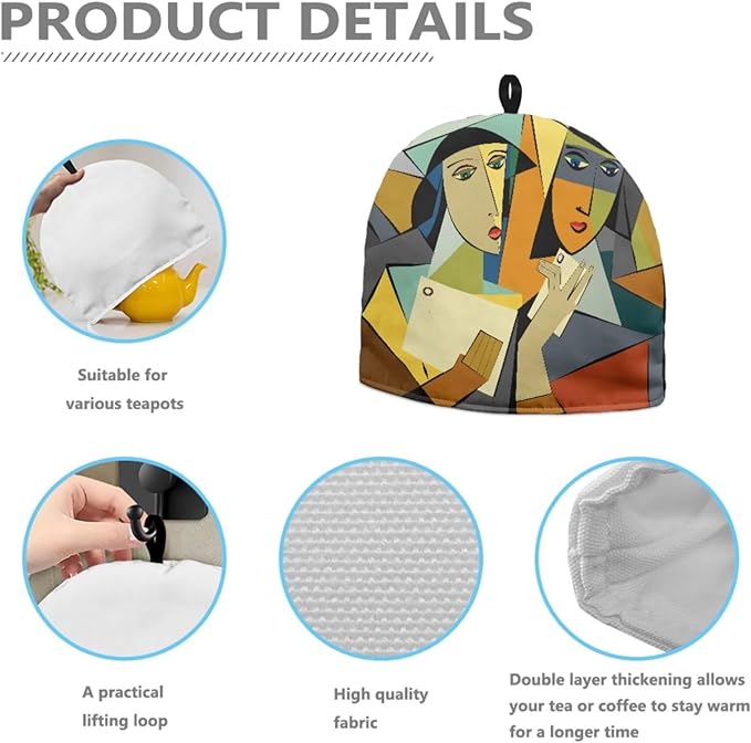 Guernica Print Tea Cosy for Teapots Dust Cover Insulated Kettle Cover Breakfast Warmer for Home Kitchen Decorative Accessories