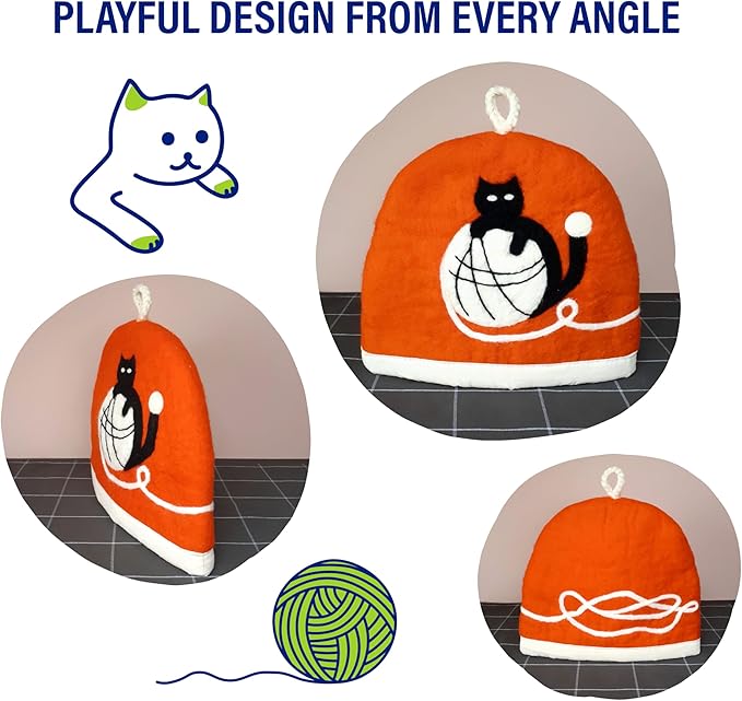- Hand-Felted Design: This teapot cozy features a delightful hand-felted cat pattern, adding a playful touch to your tea time. Ideal for cat teapot enthusiasts and those who adore whimsical tea cozies.