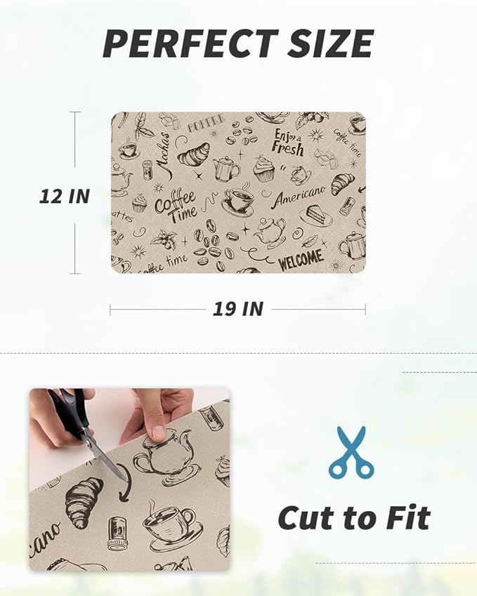 AMOAMI Coffee Mat Hide Stain Rubber Backed Absorbent Dish Drying Mat for Kitchen Counter - Fits Under Coffee Maker & Espresso Machine (12x19, Milk Tea)