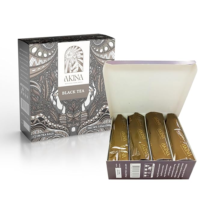 Akina Single-Origin Regular Black Tea Bags | 100% Naturally Flavored, Kenyan Origin, Gourmet Tea, Hot Beverage (100 String & Tag Bags, 200g)