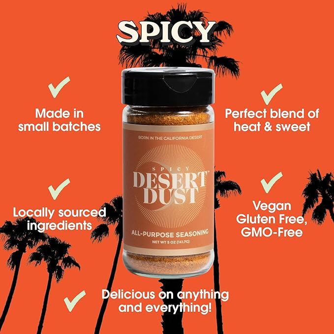 Desert Dust Spicy ??All-Purpose Chiltepin Pepper Seasoning with Organic Date Sugar | Bold Medium-Hot Heat for Steak, Chicken, Seafood, Vegetables & More | Low-Glycemic, Gluten-Free | 5oz
