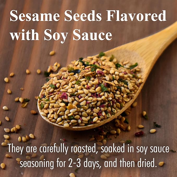 - 【Sesame seeds flavored with soy sauce】We use soy sauce flavored sesame seeds that have been carefully roasted, soaked in soy sauce seasoning for 2~3days, and then dried. Richer taste compared to other furikake.