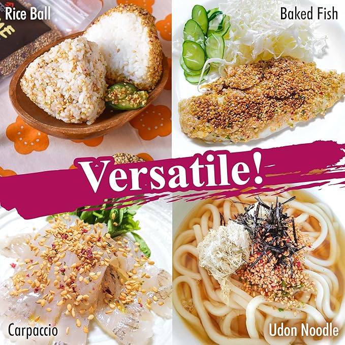 - 【Umeboshi’s Tartness and Sesame’s Umami】This Umeboshi furikake seasoning is a mixture of freeze-dried umeboshi flakes, sesame seeds flavored with soy sauce, and green laver etc. The strong sourness of pickled plums and the umami of savory sesame seeds make dishes even more delicious!