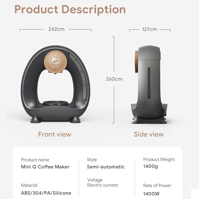 - Customizable Brew Sizes: Brew up to 240 mL (8 oz) or as little as 120 mL (4 oz), allowing you to create the perfect cup based on your mood and preference. Say goodbye to waste and hello to fresh coffee every day! Quiet Operation: The MINI Q coffee maker is designed to operate quietly, minimizing noise and vibrations. Enjoy your morning brew without disturbing your peaceful environment.