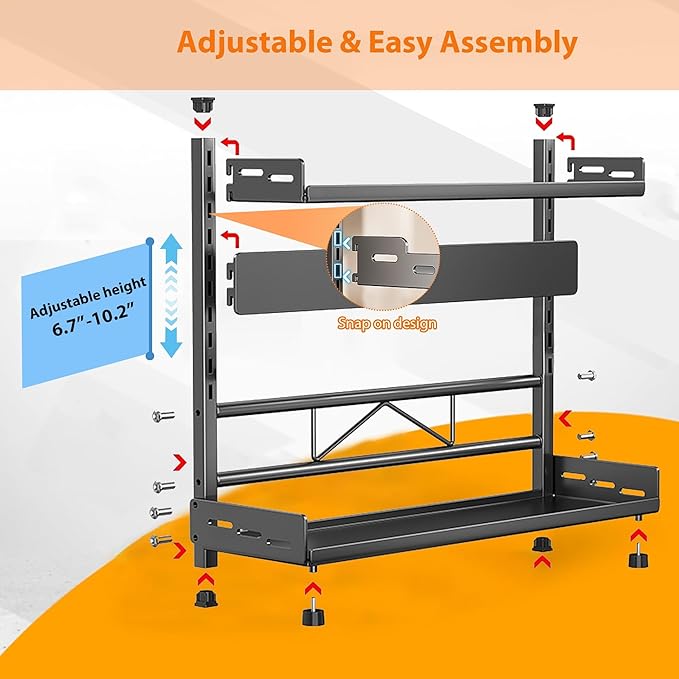 - 🛠️【Easy Installation】 Our height-adjustable spice rack for countertop is very simple to assemble. And it is detachable easily for daily cleaning. It's a breeze to assemble this sturdy storage rack with the help of the detailed assembly diagram. Whether as a thoughtful gift for others or for personal use, anyone who loves staying neat and modern style will appreciate this spice organizer for cabinet! Buy with confidence, we are committed to providing quality products