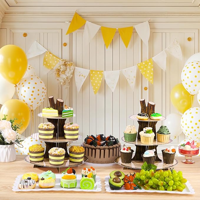 - Woodland Theme Design: The baby shower cupcake stand adopts a classic wood pattern design, and the tray is a wood grain pattern. Looks very realistic, very suitable for baby shower woodland theme decoration