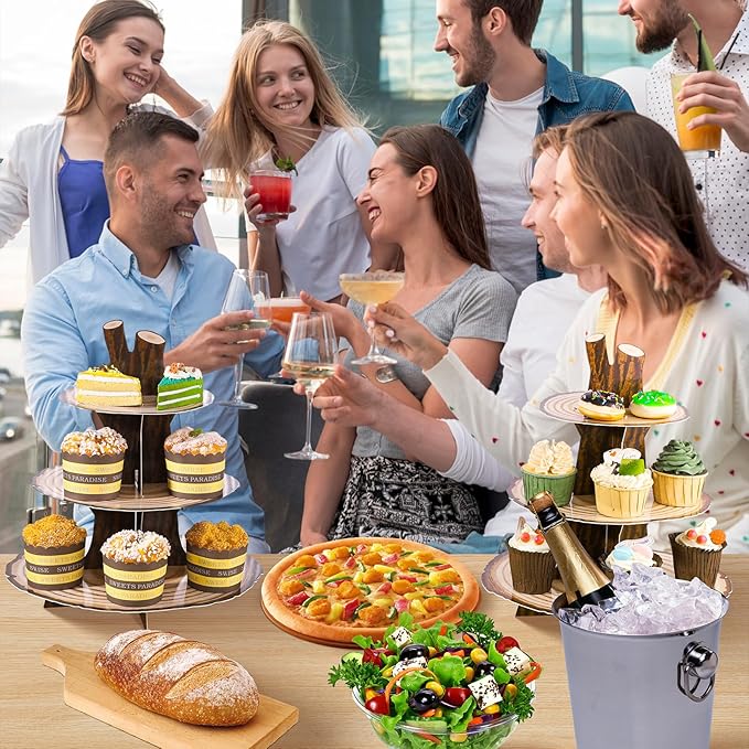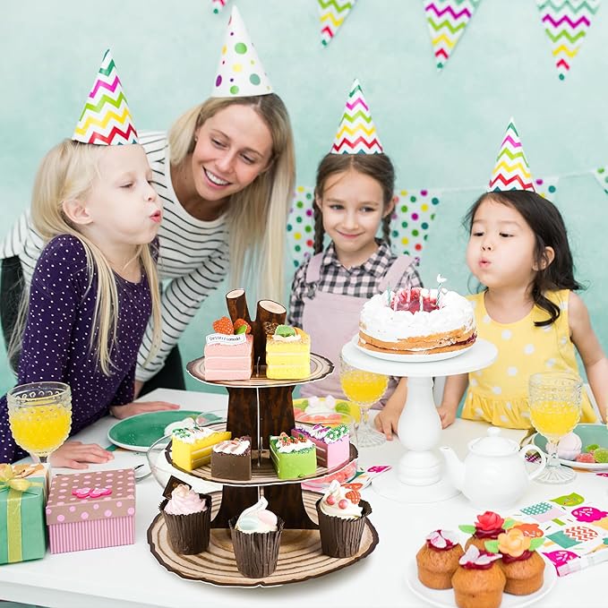 2 Pack Woodland Cupcake Stand Woodland Baby Shower Decorations 3 Tier Wood Cupcake Stand Western Party Decor for Boy Girl Camping Safari Baby Shower Birthday Forest Party Supplies